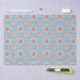 Akzentuieren Sie Ihre Geschenke mit diesem Vintagen Design. Antikes Schriftzeichen auf einem verblassten blauen Hintergrund Sets die Bühne für diesen rosa Rosenbuket auf einem altmodischen Spitzen tadellos. Rosa und weiße Keilbugen ergänzen das Muster. Auch perfekt für decoupage Projekte.
