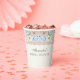 Verleihen Sie Ihrer Feier mit diesen personalisierten Papierbechern für den Junggesellinnenabschied mit Pfingstrosen und blauen Hortensien einen Hauch von Romantik. Diese zeigen eine romantische Anordnung aus zarten blauen und weißen Hortensien, kombiniert mit staubigen rosa und weißen Pfingstrosen, und strahlen Eleganz aus. Vor einem vintage-elfenbeinfarbenen Hintergrund mit zarten beigen Spitzen-Details verkörpern diese Becher eine feminine und anspruchsvolle Ästhetik. Inspiriert von der zeitlosen Schönheit von Nancy Meyers' Dekor und Mode sind diese Papierbecher die perfekte Ergänzung für Ihren floralen Junggesellinnenabschied und bringen Charme und Stil in Ihr Event. Ideal zum Servieren von Getränken bei Ihrem besonderen Anlass, vereinen sie Praktikabilität mit Schönheit.