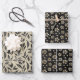 Antiquitätengold und -silber vereinen sich mit dramatischen schwarzen Farbtönen, um mit diesem Set der Verpackung von Papierblättern eine Aussage zu machen. Zwei der Blätter haben hübsche Blume Blätter Bilder auf einem schwarzen Hintergrund. Das dritte Blatt hat schwarze Blätter auf einem hellen Hintergrund. Hübsch für jeden Anlass, aber vor allem für Hochzeiten und Geburtstage.