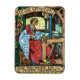 Tauchen Sie ein in einen zeitlosen Moment der Kunstfertigkeit und Bedeutung mit dieser wunderschön restaurierten Vintage-Illustration. Mit einer ruhigen Frau an einem Webstuhl, umgeben von komplizierten dekorativen Rändern und reichen Juwelentönen, beschwört dieses Design die Eleganz der Arts & Crafts-Bewegung und mittelalterlicher Erzählkunst.