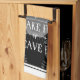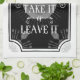 Dieses Küchenhandtuch hat ein antikes Küchenschild-Design mit dem Sprichwort "On Today's Menu - Take it or Verlass It". Dahinter befindet sich eine klassische Etikettenform in schwarz, grau Sternexplosion, Geschirr, Silber und Brille. Ein tolles Handtuch, um in einer schwarz-weißen Küche aufzuhängen.