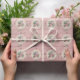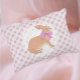 Antike kleine rosa Rosen bilden den Hintergrund für dieses süße Häschen auf einem Spitzenuntersetzer. Charmant in einem Babyzimmer oder Kinderzimmer. Perfekt für Ihren Shabby Chic, Country French, Farmhouse, Cottage-Stil und mehr Dekor.