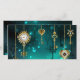 Gold, antike Schlüssel mit Gängen und Dials hängen an goldenen Ketten auf leuchtend grünem Hintergrund.