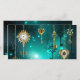 Gold, antike Schlüssel mit Gängen und Dials hängen an goldenen Ketten auf leuchtend grünem Hintergrund.