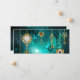 Gold, antike Schlüssel mit Gängen und Dials hängen an goldenen Ketten auf leuchtend grünem Hintergrund.