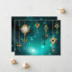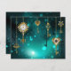 Gold, antike Schlüssel mit Gängen und Dials hängen an goldenen Ketten auf leuchtend grünem Hintergrund.