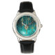 Uhr, Klassische Damenuhr mit schwarzen Lederarmband