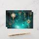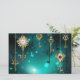 Gold, antike Schlüssel mit Gängen und Dials hängen an goldenen Ketten auf leuchtend grünem Hintergrund.