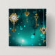 Gold, antike Schlüssel mit Gängen und Dials hängen an goldenen Ketten auf leuchtend grünem Hintergrund.