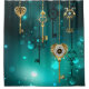 Gold, antike Schlüssel mit Gängen und Dials hängen an goldenen Ketten auf leuchtend grünem Hintergrund.