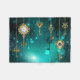 Gold, antike Schlüssel mit Gängen und Dials hängen an goldenen Ketten auf leuchtend grünem Hintergrund.