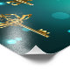 Gold, antike Schlüssel mit Gängen und Dials hängen an goldenen Ketten auf leuchtend grünem Hintergrund.