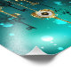 Gold, antike Schlüssel mit Gängen und Dials hängen an goldenen Ketten auf leuchtend grünem Hintergrund.