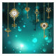 Gold, antike Schlüssel mit Gängen und Dials hängen an goldenen Ketten auf leuchtend grünem Hintergrund.