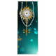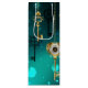 Gold, antike Schlüssel mit Gängen und Dials hängen an goldenen Ketten auf leuchtend grünem Hintergrund.