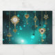 Gold, antike Schlüssel mit Gängen und Dials hängen an goldenen Ketten auf leuchtend grünem Hintergrund.