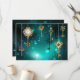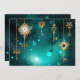 Gold, antike Schlüssel mit Gängen und Dials hängen an goldenen Ketten auf leuchtend grünem Hintergrund.