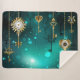 Gold, antike Schlüssel mit Gängen und Dials hängen an goldenen Ketten auf leuchtend grünem Hintergrund.
