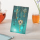 Gold, antike Schlüssel mit Gängen und Dials hängen an goldenen Ketten auf leuchtend grünem Hintergrund.