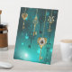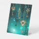 Gold, antike Schlüssel mit Gängen und Dials hängen an goldenen Ketten auf leuchtend grünem Hintergrund.