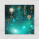 Gold, antike Schlüssel mit Gängen und Dials hängen an goldenen Ketten auf leuchtend grünem Hintergrund.