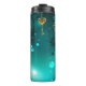 Gold, antike Schlüssel mit Gängen und Dials hängen an goldenen Ketten auf leuchtend grünem Hintergrund.