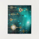 Gold, antike Schlüssel mit Gängen und Dials hängen an goldenen Ketten auf leuchtend grünem Hintergrund.