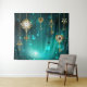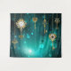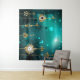 Gold, antike Schlüssel mit Gängen und Dials hängen an goldenen Ketten auf leuchtend grünem Hintergrund.
