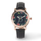 Uhr, Klassische Damenuhr mit schwarzen Lederarmband