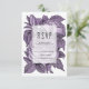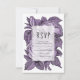 Antike violette lila Rose Vintage Blumenhochzeit RSVP Antwortkarte. Auf der Rückseite befindet sich der gleiche Blumenstrauß auf Kraftopapier.