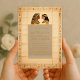 Feiern Sie Ihre Liebe mit antiker Eleganz durch die ägyptische Acrylhochzeit, inspiriert von der reichen Geschichte des antiken Ägypten. Diese Einladung, die auf einem papyrusartigen Hintergrund mit luxuriösen Goldakzenten und hierarchoglyphischen Motiven konzipiert ist, verleiht Ihrem Hochzeitstag ein Gefühl von Royalität und Romantik.