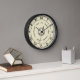 Dieses kühne und einfache, aber klassische Uhrendesign hat ein schwarz-römisches Zahlendesign mit einem Vintagen Look. Es hat Kreise und gepunktete Kreise, sowie einen gereiften Rand um sich herum. Der Hintergrund ist hellbraun-beige mit einem leicht marmorierten Effekt. Sie können mit der einfachen Vorlage einen Textkreis in die Mitte einfügen oder den Beispieltext löschen, um ihn leer verlassen. Wenn Sie Text hinzufügen, achten Sie darauf, dass Sie nicht zu viel hinzufügen oder es sich unten überlappen wird. Sie können es auch "anpassen", um Änderungen vorzunehmen. Das ist eine hübsche, antike Wanduhr.