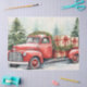 Antiker roter LKW mit Weihnachtsbäumen im Schnee Seidenpapier