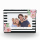 Erschaffen Sie einen süßen Sake mit unserem schicken Blumenblock, mit Ihrem bevorzugten horizontalen oder landschaftlich orientierten Foto gerahmt durch eine Holzkohle aus schwarz-weiß Streifen und mit Haufen von rot-rosa Wasserfarbenpeony Blume und sage-grün Blätter. Fügen Sie Ihre individuelle Nachricht mit dem dafür vorgesehenen Feld hinzu; wir Liebe sie mit "Wir Liebe Sie Mama" und dem Jahr für ein einzigartiges Muttertag, Geburtstag oder junge Mutter Geschenk.
