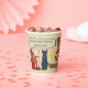 Fügen Sie Ihre eigene Nachricht hinzu, um personalisiertes Party mit einem ägyptischen Thema zu erstellen. Diese Papiertassen verfügen über eine Collage verschiedener Illustrationen, die durch das Kunstwerk des alten Ägypten mit der eigenen, individuellen Botschaft in einem Rahmen in Form eines Kartons inspiriert werden. Die Grafiken in Gelb, Orange, Rot, Braun und Blau sind Set vor einem hellen sandfarbenen Hintergrund.