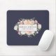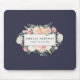 Das elegante Mousepad-Design mit Blumenmousepad ist mit Ihrem Namen und/oder Firmennamen gerahmt, der durch eine weitläufige Aquarellfarbe in Rosa, Salbei, Pfirsich und Creme auf einem kontrastierenden, tiefblauen Hintergrund der Mitternacht.