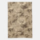 Antikes botanisches Blumenmuster-Küchentuch mit weichen cremefarbenen und beigen Blumen mit detaillierten Stielen, Blättern und zarten Schriftakzenten auf einem gealterten neutralen Hintergrund. Elegant und zeitlos mit einer rustikalen floralen Ästhetik, ist dieses nahtlose Design ideal für Cottagecore-Liebhaber, Garten-Enthusiasten, Vintage-Stil-Fans und Bewunderer botanischer Kunst.