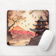 Ein schönes, braunes Mauspad mit einer Papierausschnitt-Szene, die antikes chinesisches Gebäude, Bäume, Berge und See darstellt.