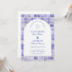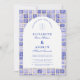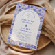 Ein zeitloses blau-weißes Design, inspiriert von klassischem Delfter Porzellan und französischen Toile-Mustern. Der Patchwork-Fliesenrand kombiniert zarte Blumenmuster, Streifen und ornamentale Motive, die an europäische Vintage-Keramik erinnern. Ein weiches, gebogenes Paneel in der Mitte hält das Layout elegant und raffiniert und lässt die Details des Porzellan-inspirierten Musters die Feier schön umrahmen. Perfekt für Paare, die eine anspruchsvolle blau-weiße Hochzeit mit traditionellem europäischen Charme planen.