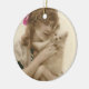 Antikes Foto Viktorianische Frau und Hund Keramikornament
