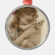 Antikes Foto Viktorianische Frau und Hund Silbernes Ornament