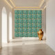 Diese markante Kachel weist ein klassisches griechisches Schlüsselluster (Mander) in luxuriösem Gold auf, das vor einem lebendigen aquamarinen Hintergrund steht. Das Design erinnert an die Eleganz und die Kunstfertigkeit des antiken Griechenlands, das perfekt dazu geeignet ist, jedem Raum eine Touch zeitloser Eleganz hinzuzufügen. Ideal für den Gebrauch in Badezimmern, Küchen oder als dekorativer Akzent, ist diese Kachel eine dauerhafte und stilvolle Wahl sowohl für den Wohnbereich als auch für kommerzielle Anwendungen. Die aufwändigen Details und die Farbenpracht machen es zu einem herausragenden Stück, das Ihrer Wohngestaltung ein Gefühl von Geschichte und Kultur vermittelt.