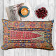 Mit diesem farbenfrohen Stammesdesign verwandeln Sie Ihren Wohnraum wunderbar. Der originale handgewebte und zeitlose Kilim-Gebetsteppich hat viele der traditionellen Elemente Vintag. Der Kilim wurde in der Türkei mit pflanzlichen Farbstoffen und handgesponnener Wolle gewebt. Die Farbtöne sind lebendige Blues, dunkelmarineblau, rosa, orange und weiß. Dieses Design funktioniert in allen Kissengrößen, sieht aber durch die quadratischen Formen anders aus. Ich finde, es sieht besonders schön aus bei den größeren Rechteck-Formen.