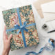 Verleihen Sie Ihren Geschenken zeitlose Eleganz mit diesem floralen William-Morris-inspirierten Geschenkpapier, das ein reich detailliertes botanisches Muster im klassischen viktorianischen Arts-and-Crafts-Stil zeigt. Das Design präsentiert komplizierte Blumen und fließendes Blattwerk, angeordnet in einem schön ausbalancierten ornamentalen Muster, das an die berühmten Textil- und Tapetendesigns von William Morris aus dem 19. Jahrhundert erinnert.