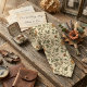 Charmante und elegante Krawatte mit einem zarten, rankenden Rebenmuster mit kleinen orangefarbenen und goldgelben Wildblumen, Knospen und weichen salbeigrünen Blättern auf einem hellen cremefarbenen Hintergrund. Das komplizierte botanische Design hat eine schöne, vintagehafte Ausstrahlung mit einer frischen, romantischen Note, die vielseitig und maskulinen Stils bleibt. Dieses naturinspirierte Muster bietet eine elegante Alternative zu einfarbigen Krawatten und ist somit perfekt für Frühlings- und Sommerhochzeiten, Gartenpartys oder jeden Anlass, bei dem man eine subtile, aber dennoch unverwechselbare florale Aussage treffen möchte.