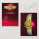 Eleganter Schmuck aus ägyptischem Gold mit großen Flügeln und zwei goldenen Mais im roten Bordeaux. . Digitale grafische Gestaltung von Bulgan Lumini