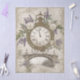 This timeless design features a classic French clock at the center, surrounded by ivory roses, sprigs of lavender, and delicate lace details. A graceful Parisian bridge and vintage bicycle complete the scene, evoking the soft nostalgia of old postcards and antique ephemera.