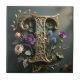 Antique Floral Gold Letter T Monogram Fliese