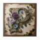 This design is special for its detailed dimensional gold scrollwork, which frames an inner layer of iridescent, cracked patina. The letter 'P' is lavishly decorated with a garland of deep purple roses, lavender peonies, and blue poppies. Set against cracked antique parchment, the piece achieves a luxurious, ethereal, and unique heirloom aesthetic.
