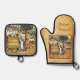 ANTIQUE GRAPE VINEYARD HARVEST PARCHMENT OFENHANDSCHUH & Topflappen-Set